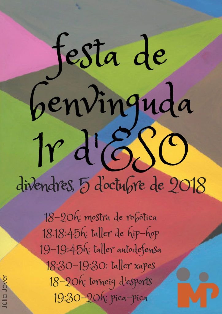 28 Sep General, Novetats FESTA BENVINGUDA 2018 1r ESO Divendres 5 d’octubre de 2018. Informació: Institut Menéndez Pelayo LLIURAMENT D’ORDINADORS FLYTECH REUNIONS AMB FAMÍLIES CURS 2018 2019